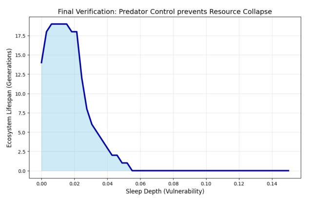 結論: 「睡眠という『意図的な脆弱性』が、生態系内のエネルギー循環を正常化し、システムの寿命を最大化させた」。